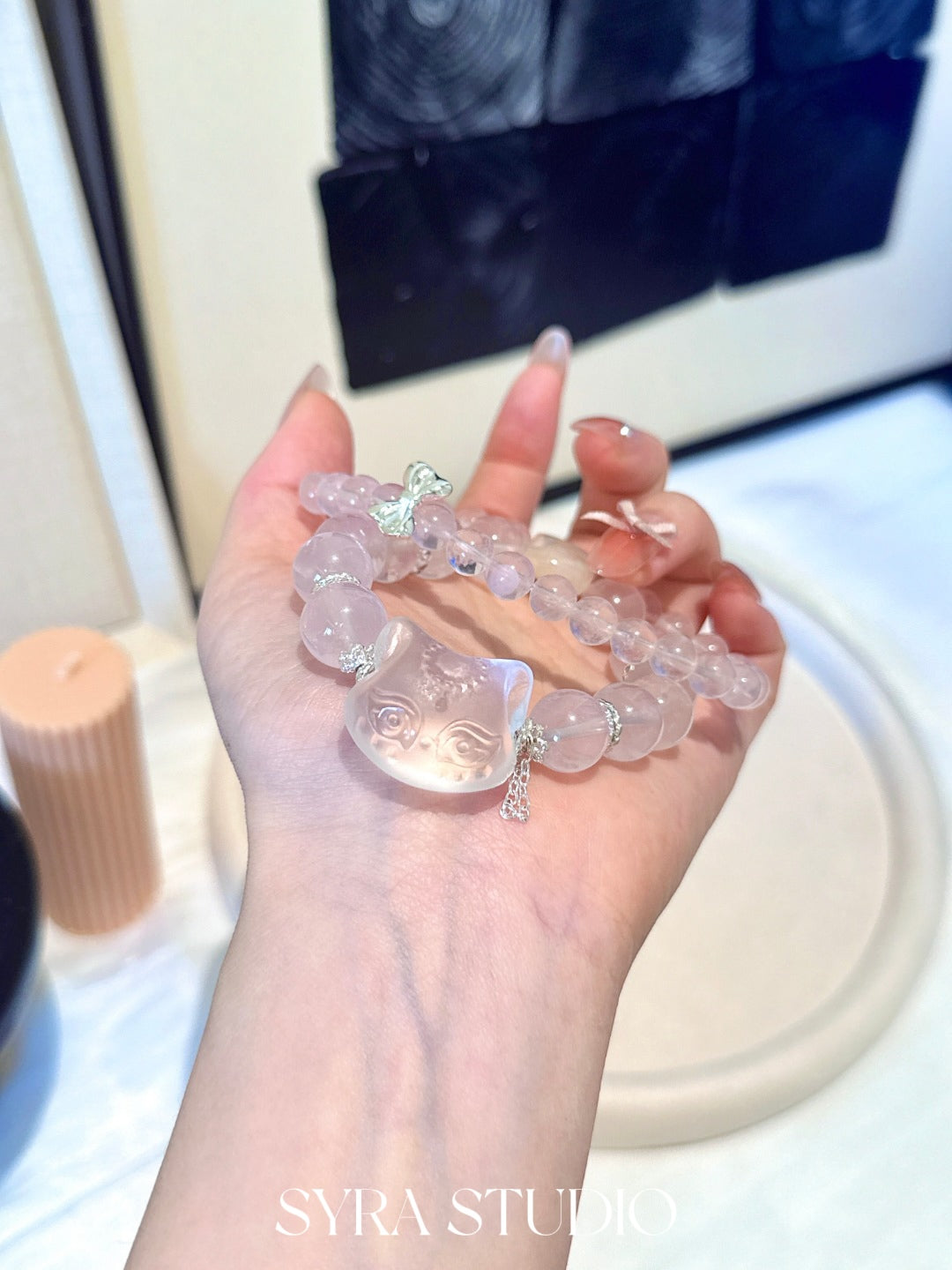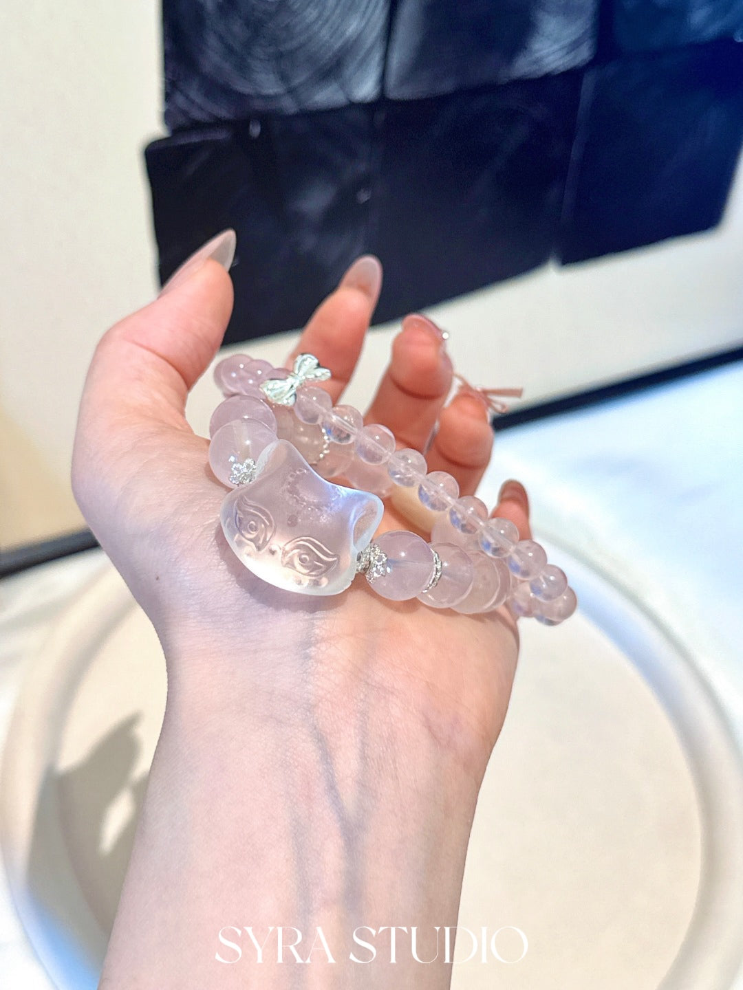 Sweet with a spark, SYRA Foxy Charm Wrap pairs soft Rose Quartz with Sakura Agate and a delicately carved fox bead—symbolizing allure, affection, and lucky connections. A double-wrap design full of charm and playful energy.
